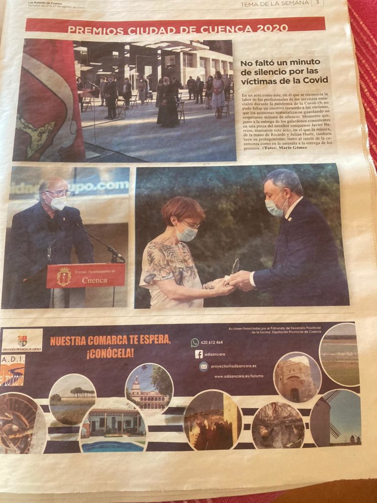 El Ayuntamiento de Cuenca ha entregado hoy los #PremiosCiudaddeCuenca a los servicios esenciales en pandemia, profesionales “que lo dieron todo y arriesgaron su salud para cuidar de todos nosotros”