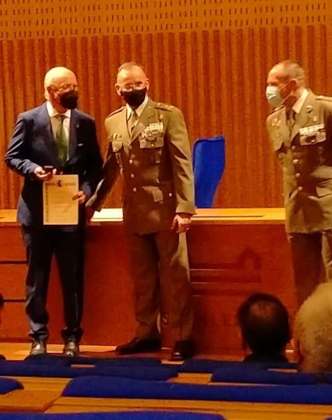 Miguel Romero recibe la Bandera de Mochila de España, concedida por la Subdelegación de Defensa en Cuenca, el día de San Fernando. (Más información).