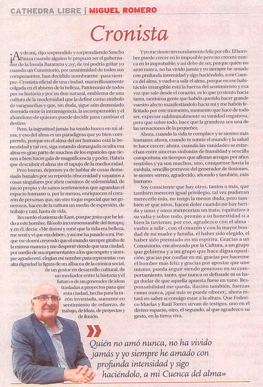 Artículo de Miguel Romero en la Tribuna de Albacete. (Artículo).