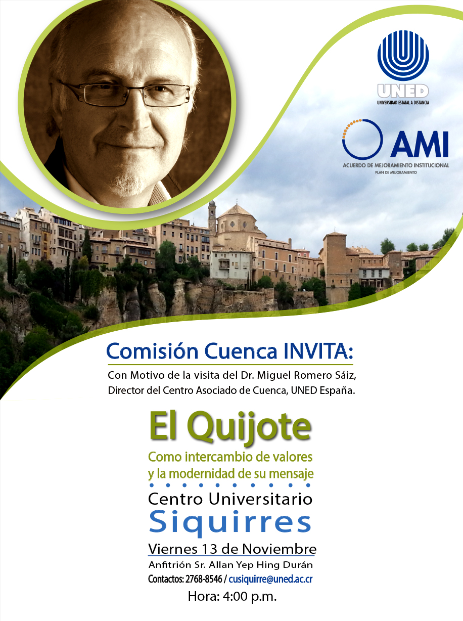 Conferencia en el Centro Universitario Siquirres "El Quijote como intercambio de valores y la modernidad de su mensaje. (Más Información).