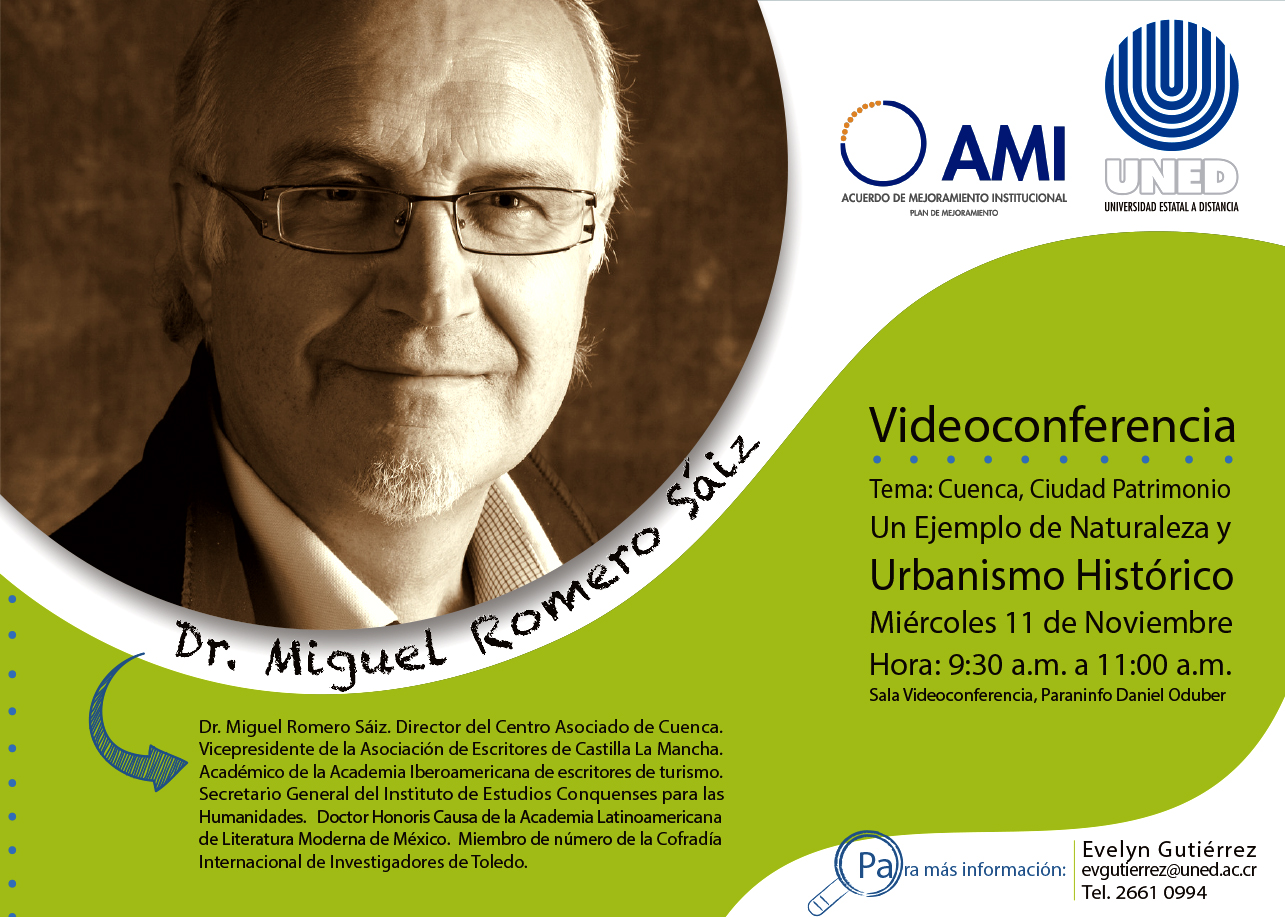 Videoconferencia desde el Paraninfo Daniel Oduber: "Cuenca, Ciudad Patrimonio. Un ejemplo de naturalecza y urbanismo Histórico". (Más Información).