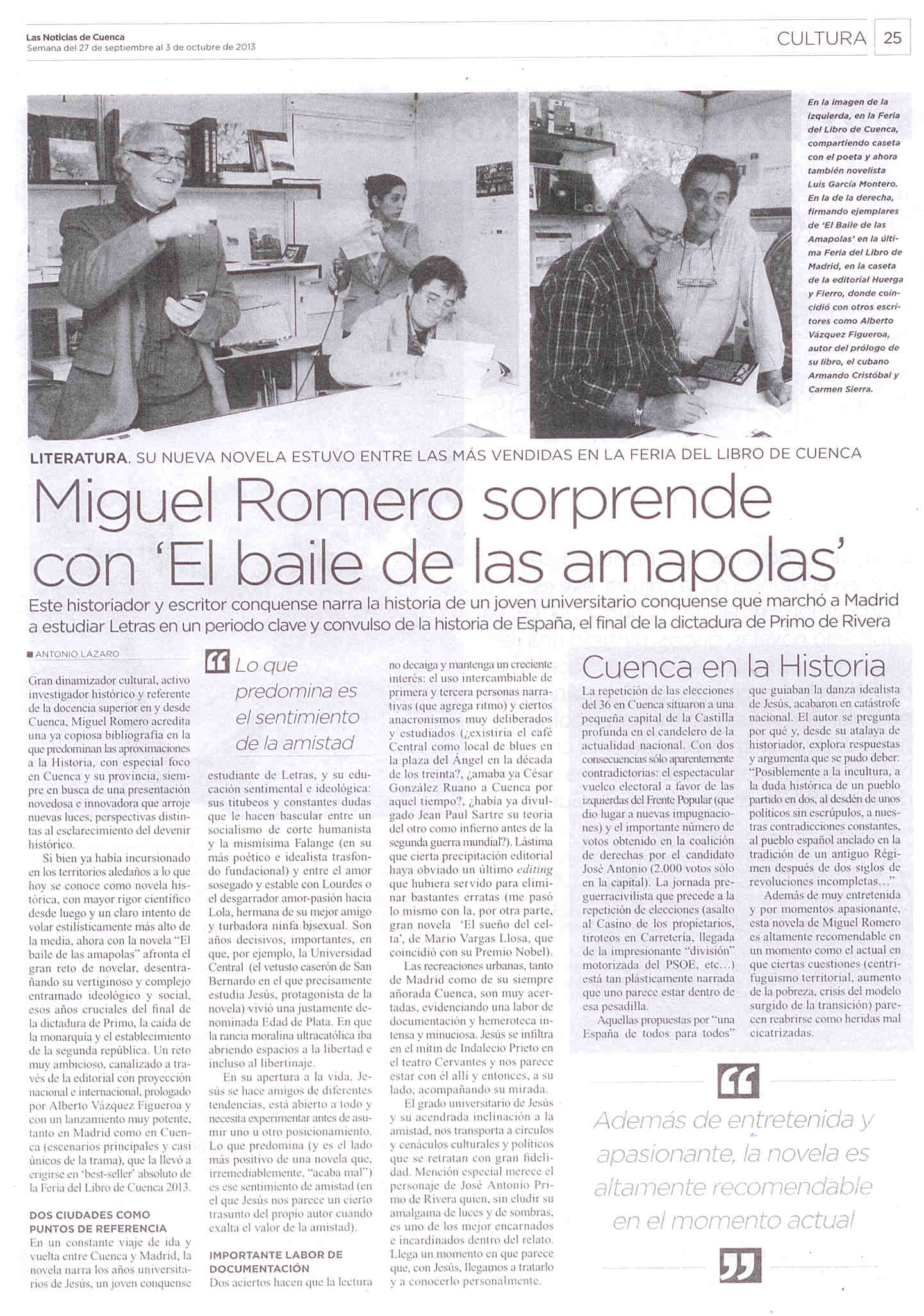 - Homenaje a Miguel Romero organizado por la Asociación de Escritores.