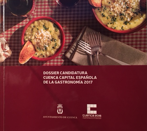 Libro de 120 páginas, en papel cuché y tapa rústica a color, para presentar la ciudad y provincia de Cuenca a la candidatura de Ciudad Española de la Gastronomía.