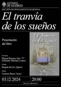 El martes 3 de diciembre, a las 20:00 horas en el Ateneo de Madrid, presentado por el reconocido escritor Fernando Martínez Lainez, Miguel Romero Saiz, presenta su último libro “El tranvía de los Sueños” de la editorial Hades.